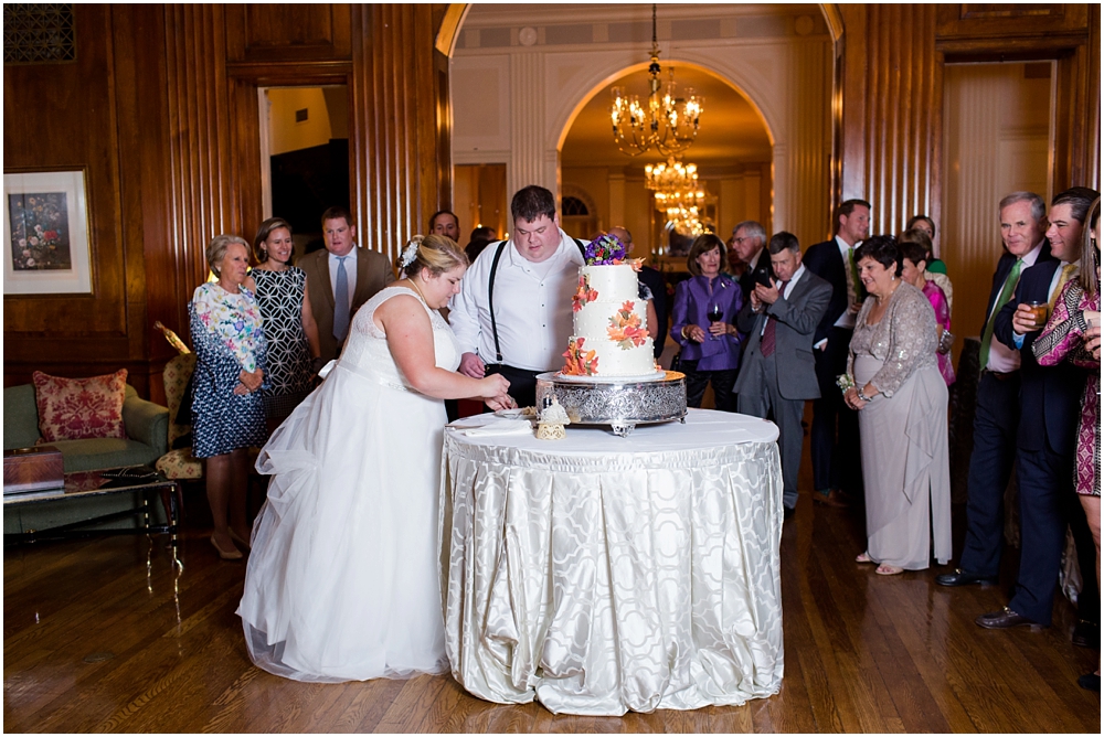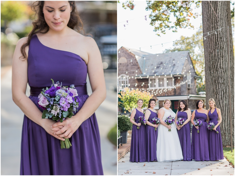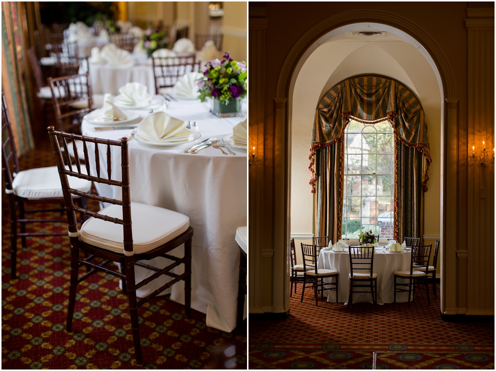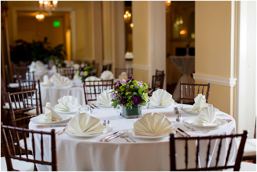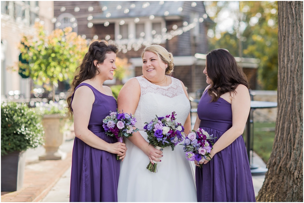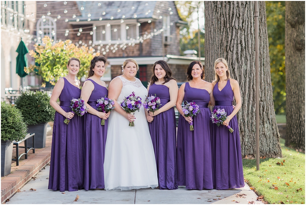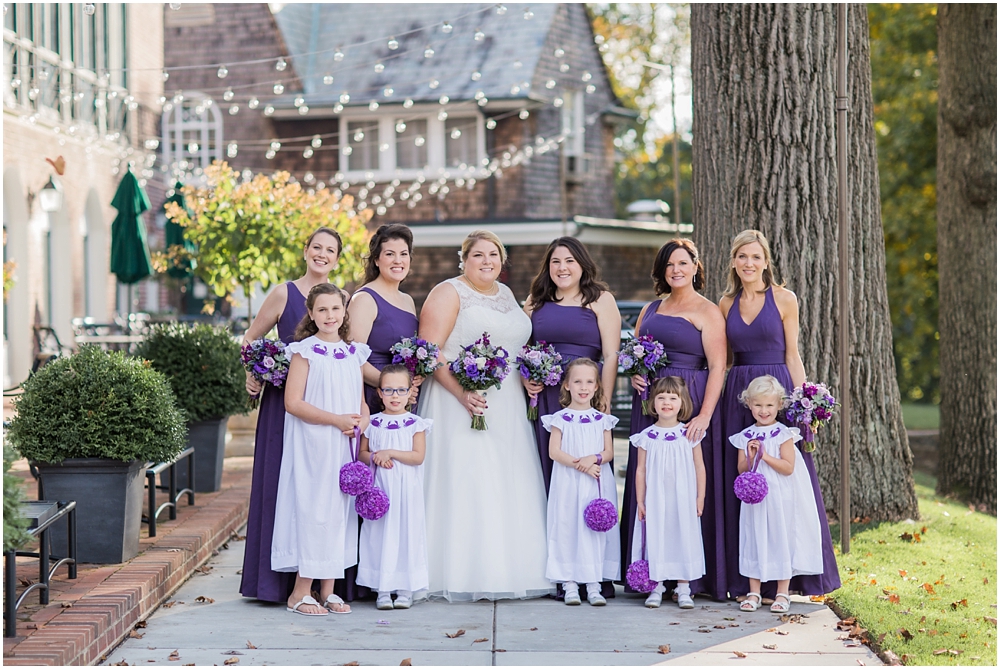 Charlene and Michael’s late fall wedding at Baltimore Country Club was a stunning affair. Charlene accented with purples and greens that popped against the interior of the club and really made a classic statement. Michael and Charlene’s wedding party was comprised mostly of those closest to them, their siblings and nieces and nephews. The little girls were too cute for words! They wore matching white flower girl dresses embroidered with purple crabs there were perfect for any Maryland wedding! The club and the amazing team of vendors did an outstanding job bringing Charlene’s visions to life.