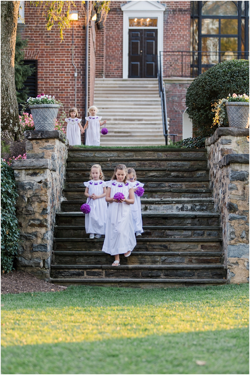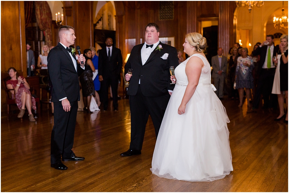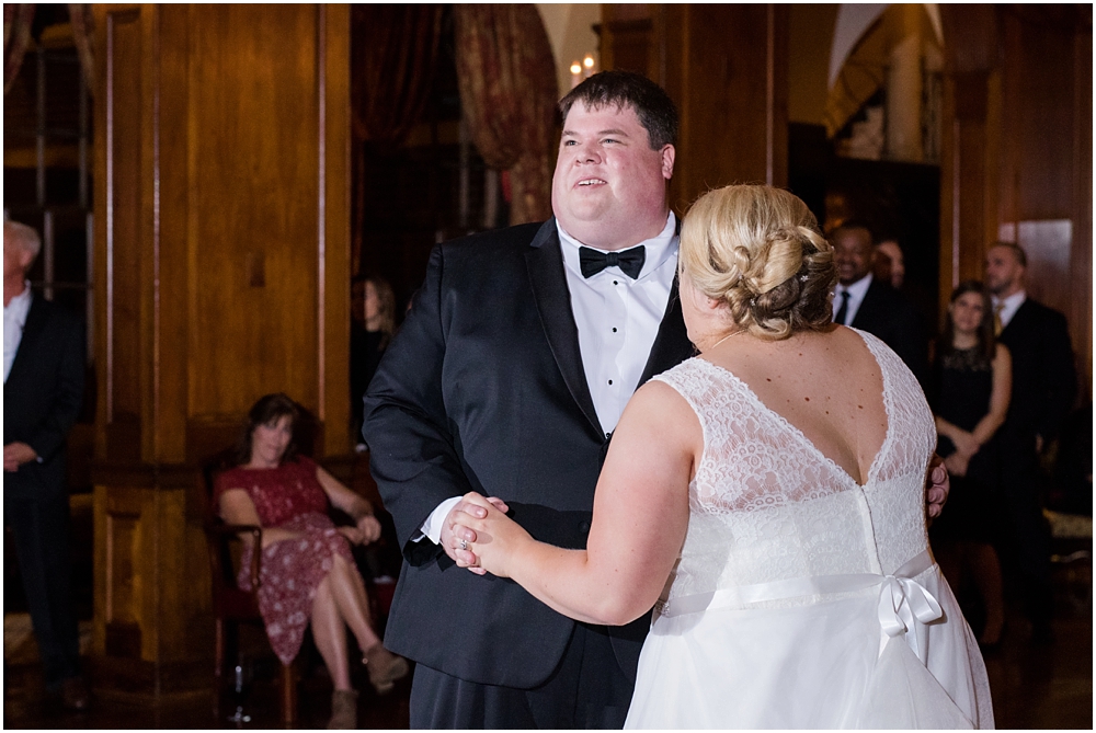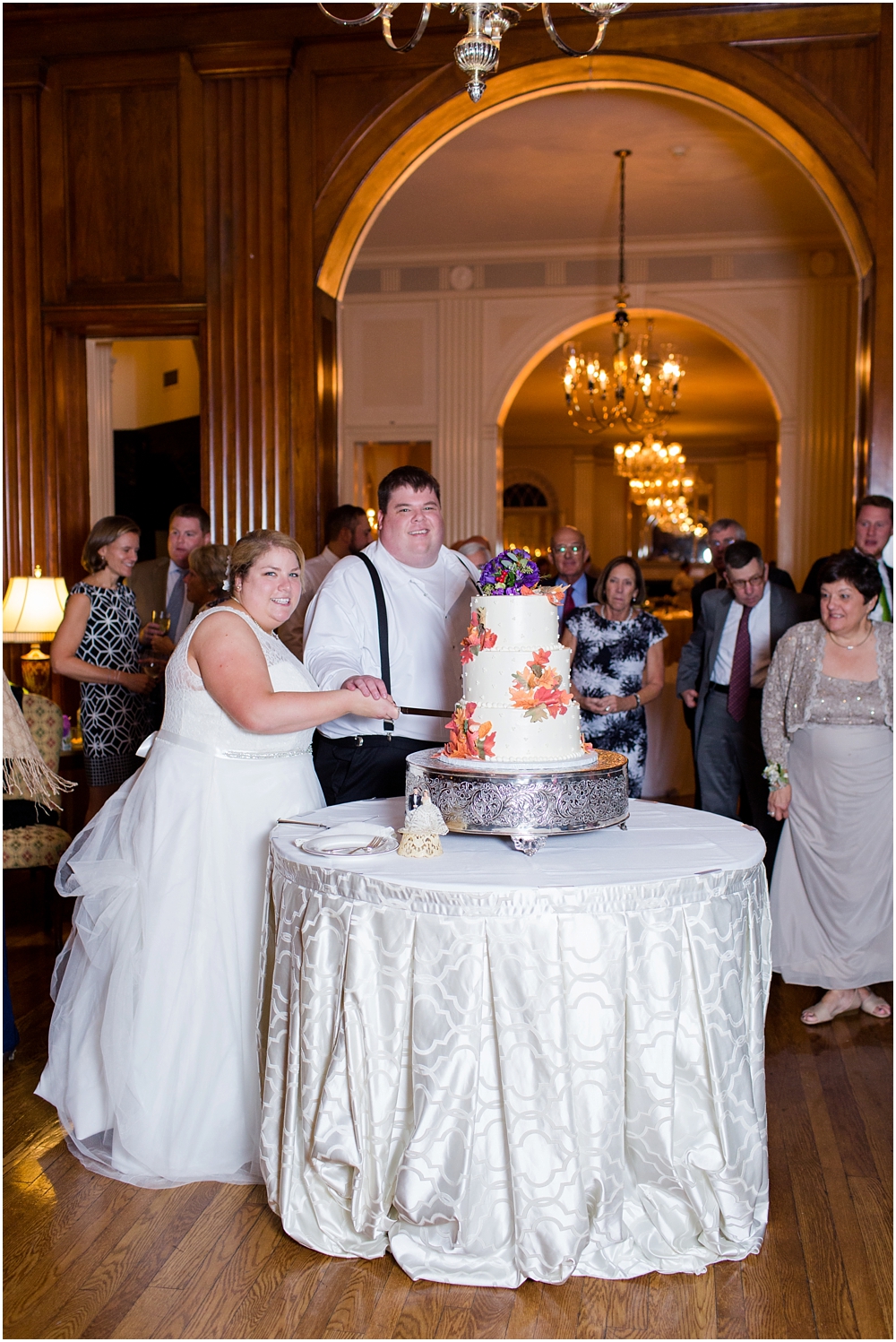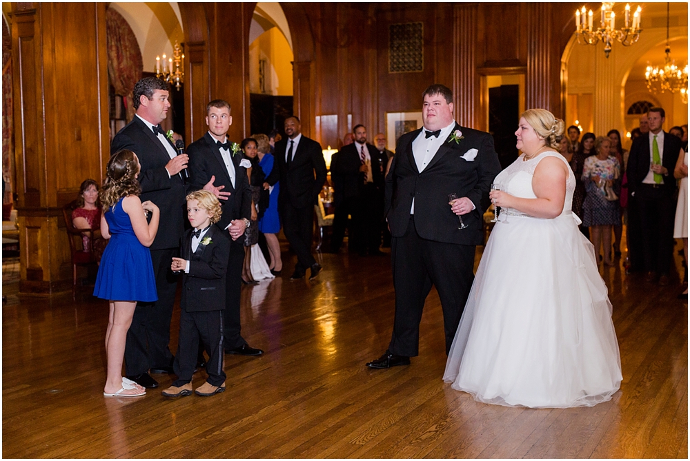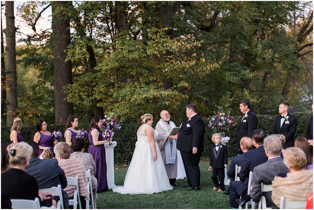 Charlene and Michael’s late fall wedding at Baltimore Country Club was a stunning affair. Charlene accented with purples and greens that popped against the interior of the club and really made a classic statement. Michael and Charlene’s wedding party was comprised mostly of those closest to them, their siblings and nieces and nephews. The little girls were too cute for words! They wore matching white flower girl dresses embroidered with purple crabs there were perfect for any Maryland wedding! The club and the amazing team of vendors did an outstanding job bringing Charlene’s visions to life.