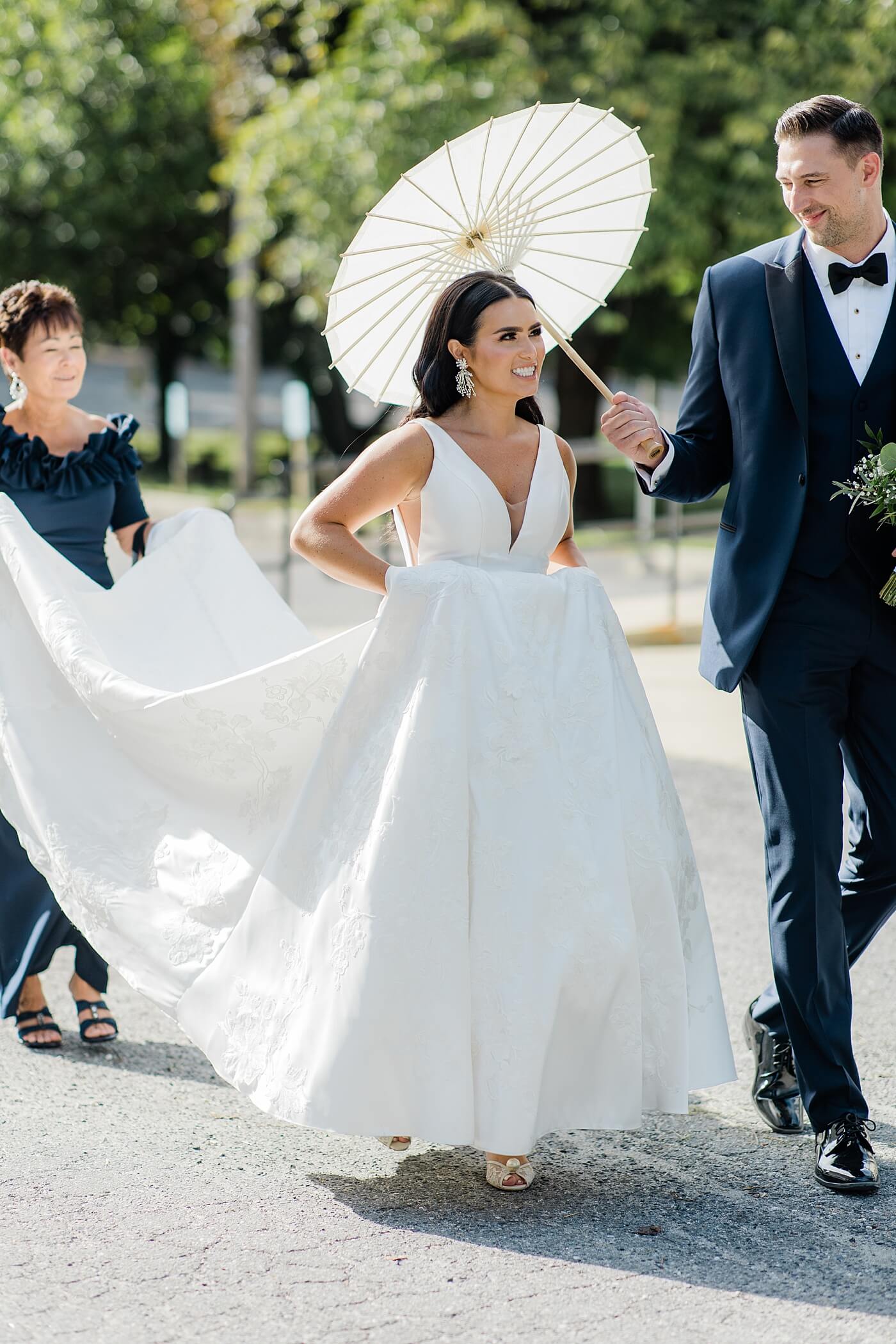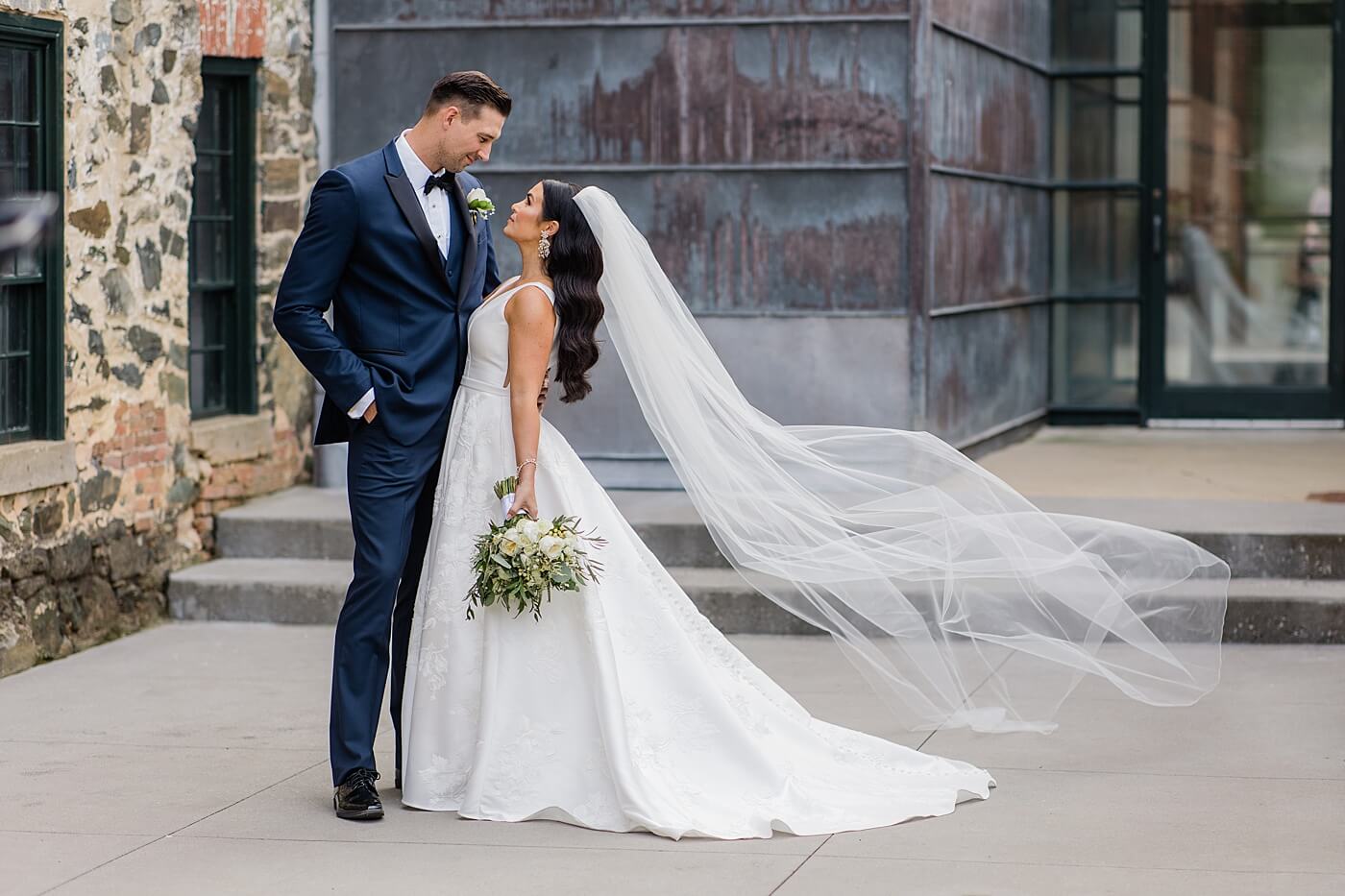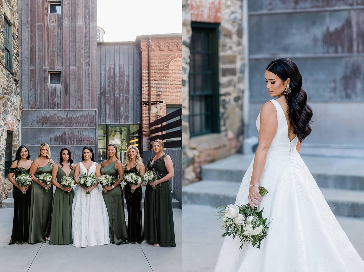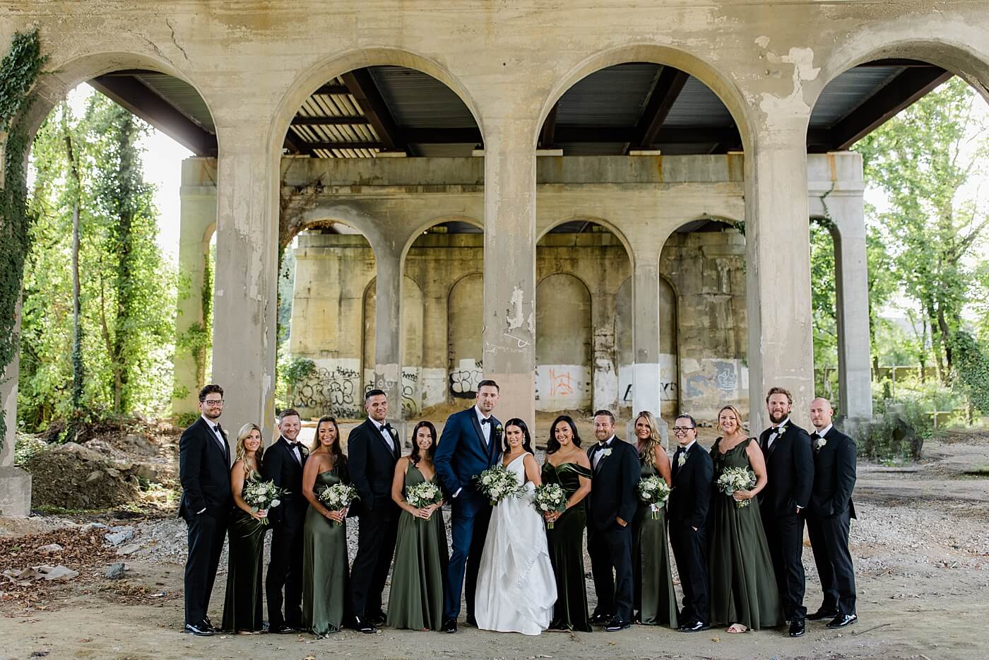 Picture this: a mix of elegance, bold vibes, and a dash of drama – the recipe for Emily and Forrest’s wedding that made it perfection. Emily rocked her bridal style in a drop-dead gorgeous gown, with her girls in an earthy green palette that complimented the rustic charm of the Baltimore, Maryland wedding venue The Mt. Washington Mill Dye House perfectly.