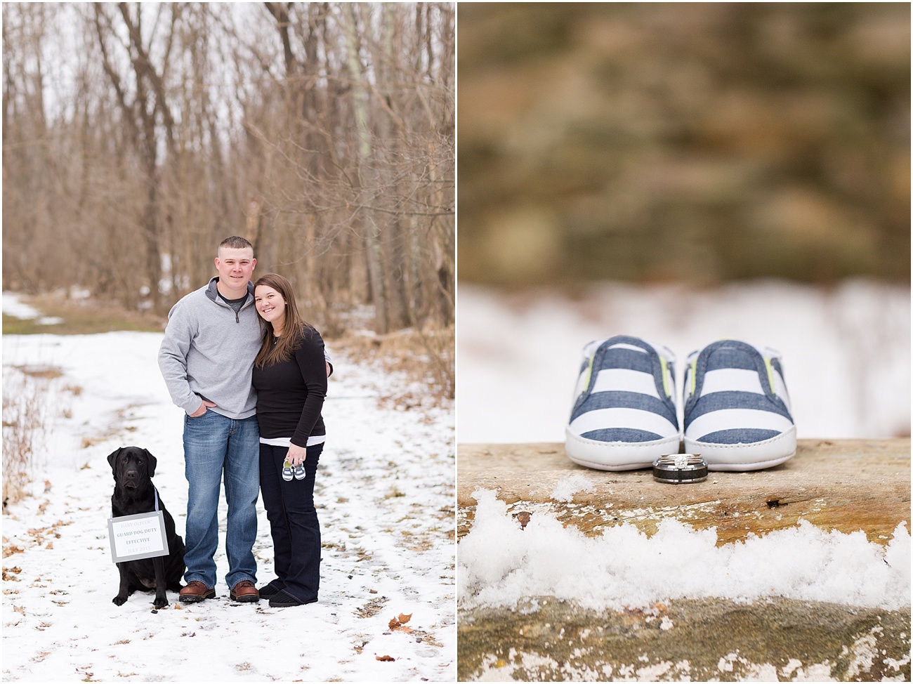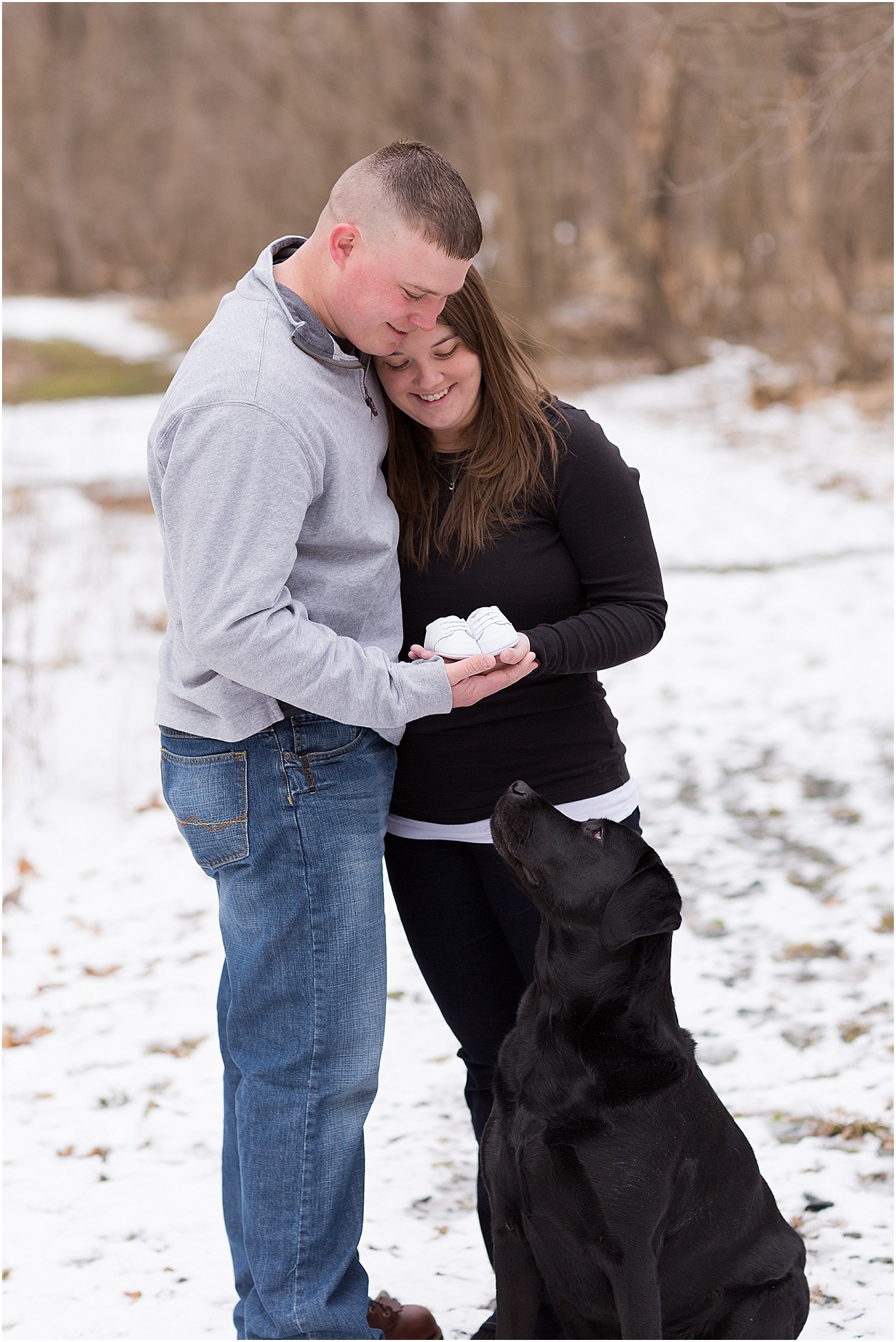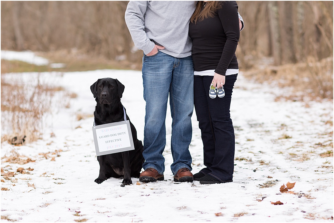 Jamie, Ben + Miss Lucy (future big “fur” sister) met me at Oregon Ridge and to our surprise, there was still snow on the ground and it actually wasn’t the messy yuck snow that lingers around all winter; It beautiful, soft and a perfect touch as the backdrop to their wintery photos.