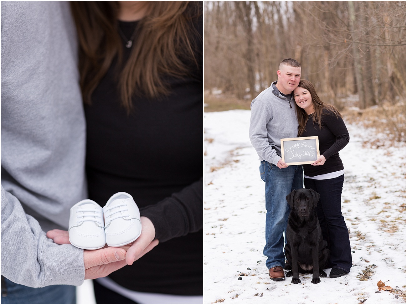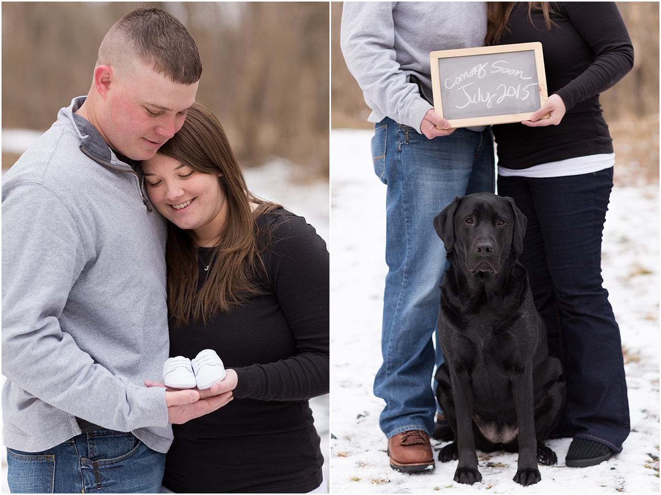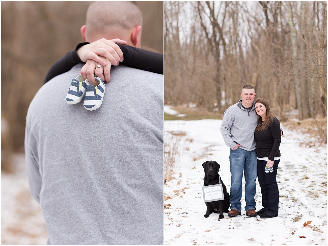 Jamie, Ben + Miss Lucy (future big “fur” sister) met me at Oregon Ridge and to our surprise, there was still snow on the ground and it actually wasn’t the messy yuck snow that lingers around all winter; It beautiful, soft and a perfect touch as the backdrop to their wintery photos.