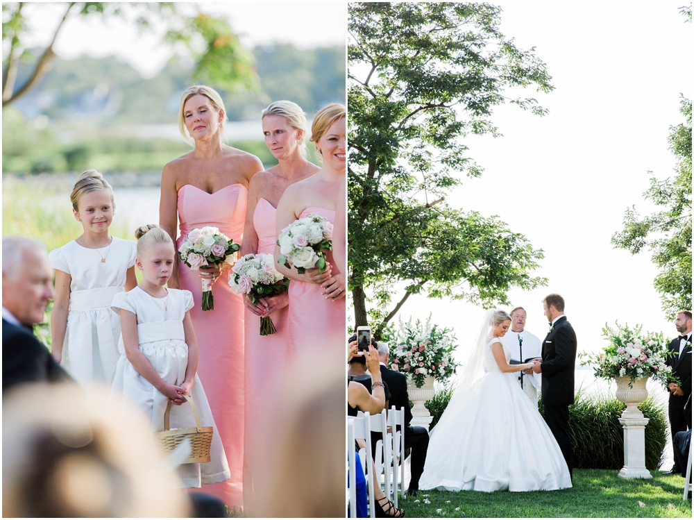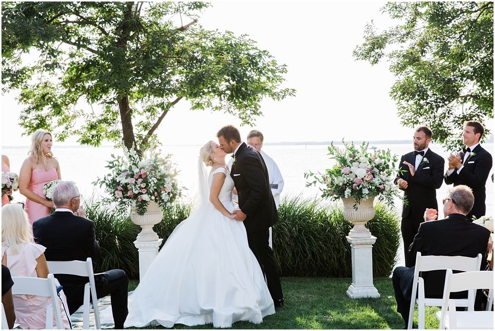 Lauren & Pete had the most perfect summer black tie wedding at the Chesapeake Bay Beach Club. The sun was shinning, the late summer humidity was no where to be found, the air was filled with a slight summer breeze and everyone was so relaxed and full of laughter. Lauren worked tirelessly to make sure every details was perfect and boy did she succeed. Every detail down to the 200 hand painted oyster shells were simply stunning.