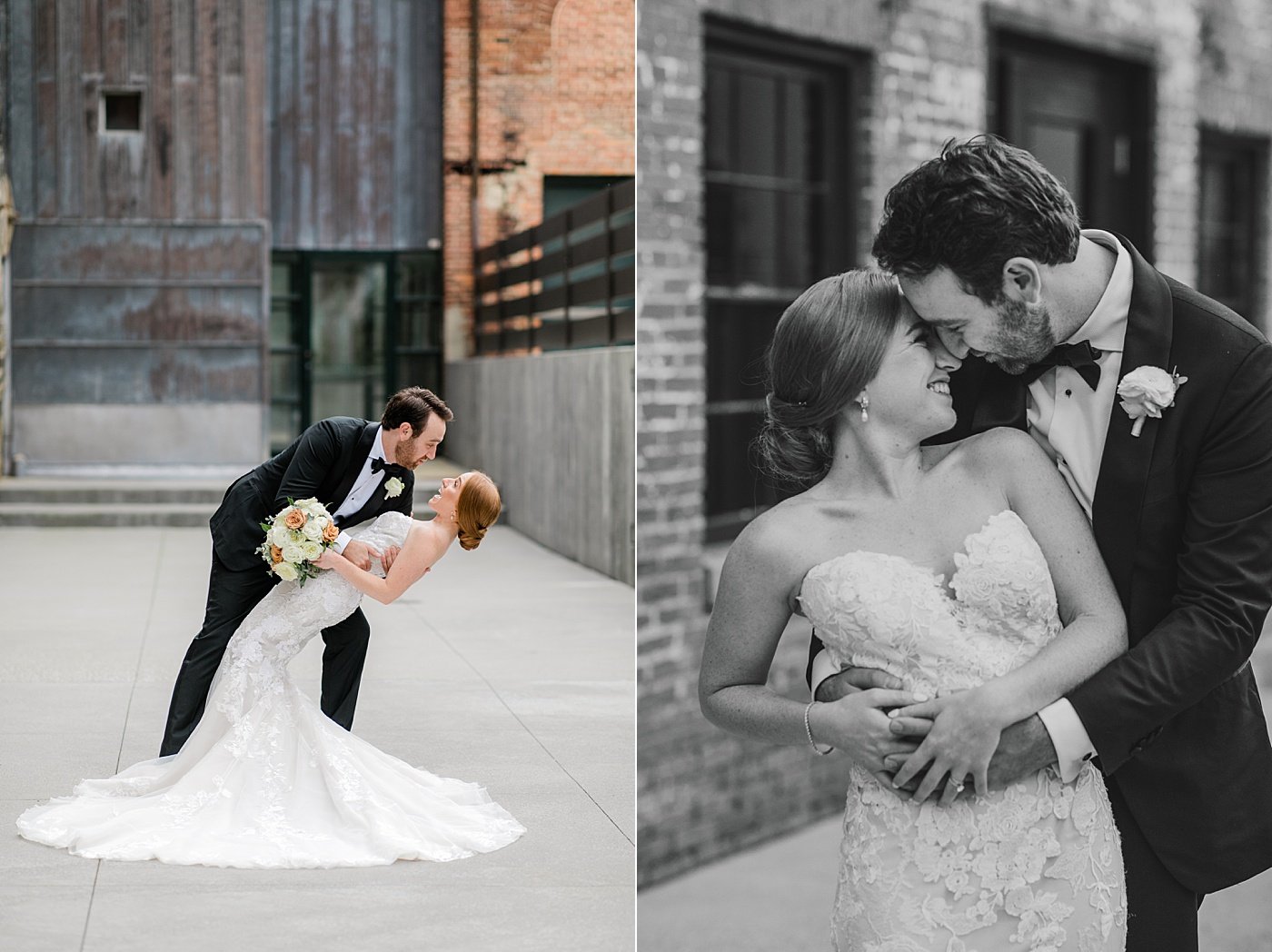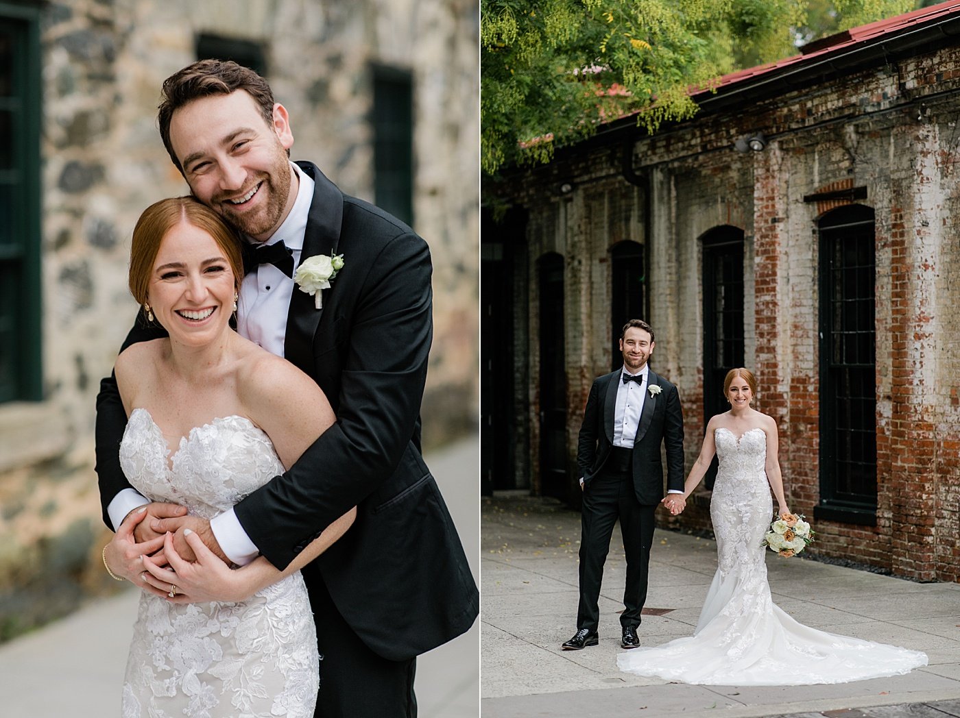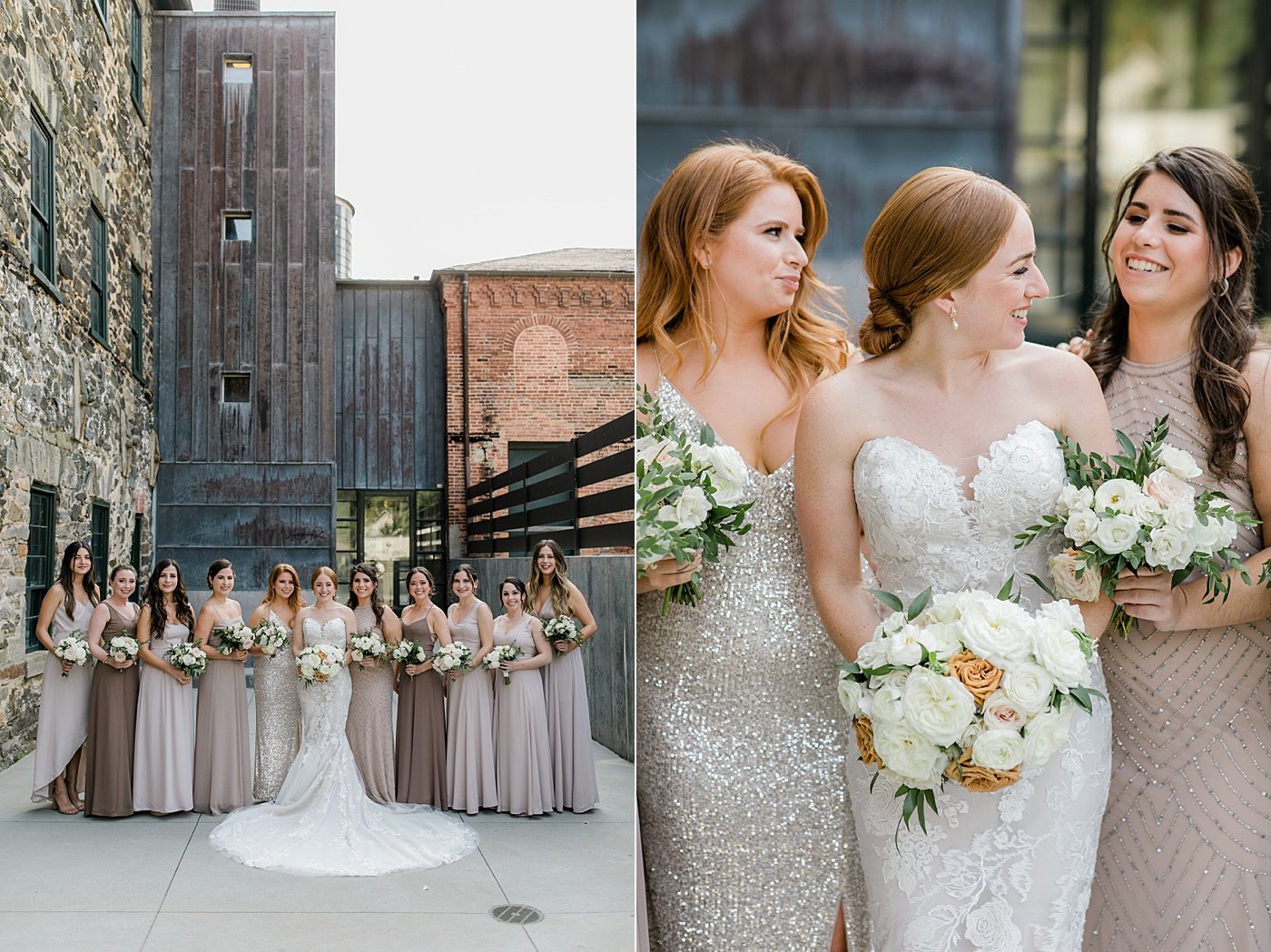 Beautiful inside and out JHP couple Cyleena & Sam were married in September at historic Baltimore wedding venue, the Mt. Washington Dye House. The bold exposed brick was the perfect juxtaposition to their clean and classic style, with a nod to traditional fall colors and plenty of lush florals, especially in the beautiful reception space. Cyleena & Sam carved out plenty of time for many romantic bride and groom portraits on their wedding day and we are in LOVE with the results, and their incredible wedding album Cyleena designed with the JHP Team following the wedding.