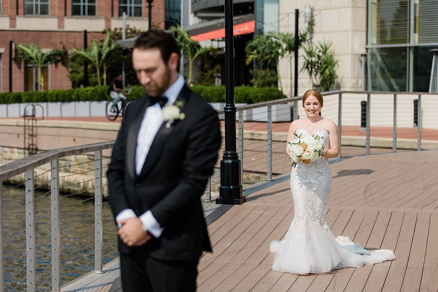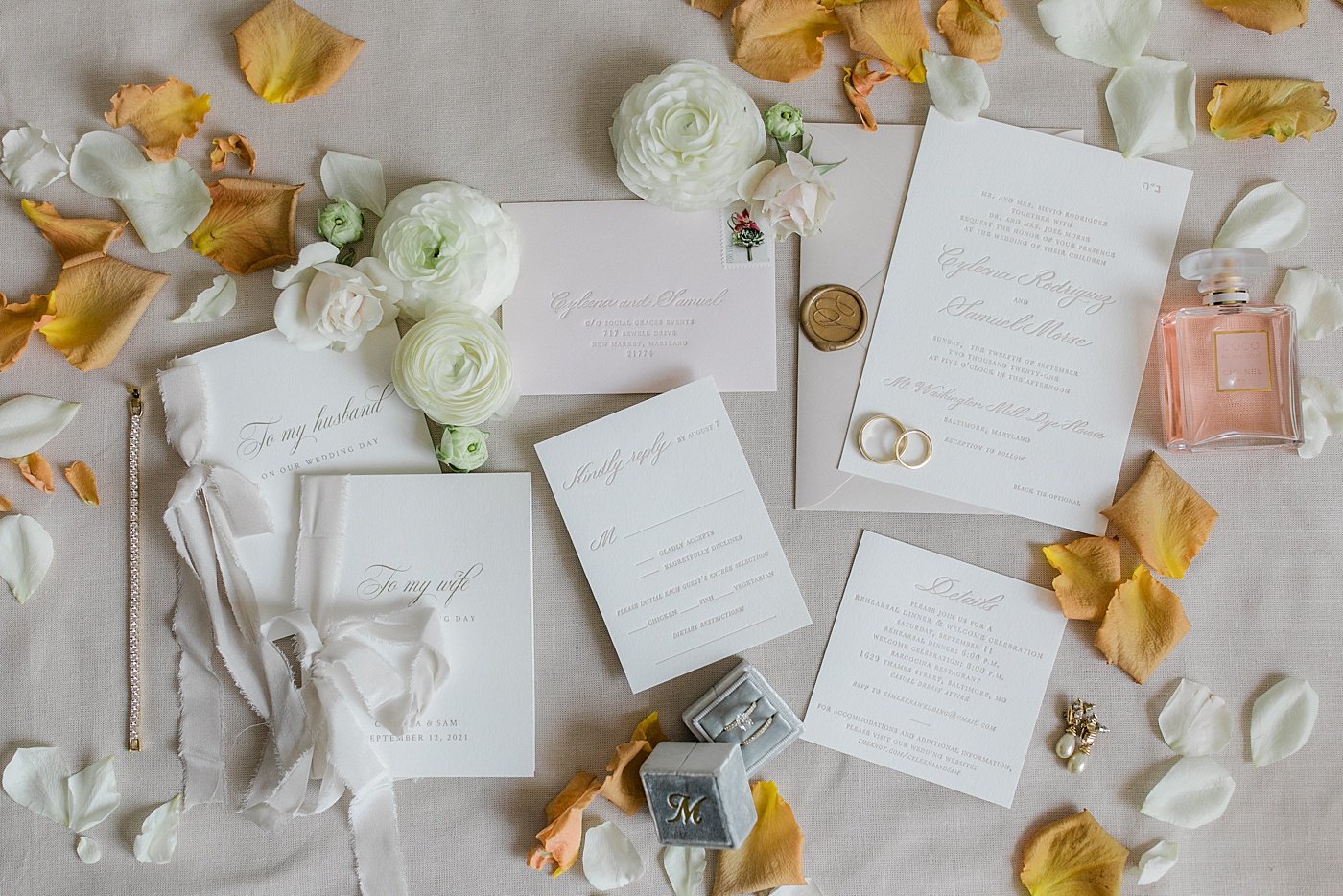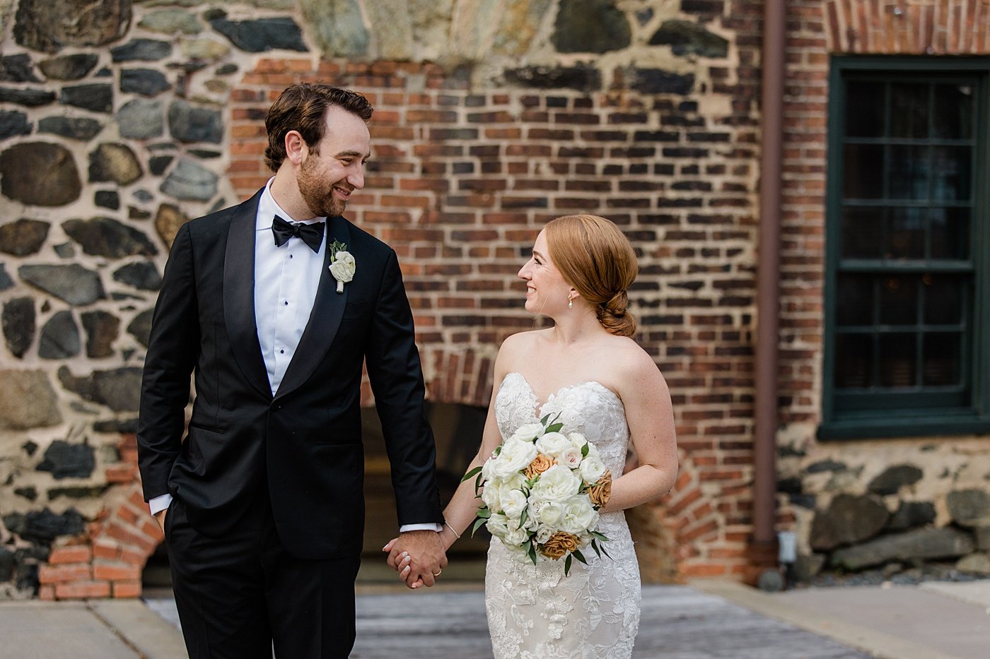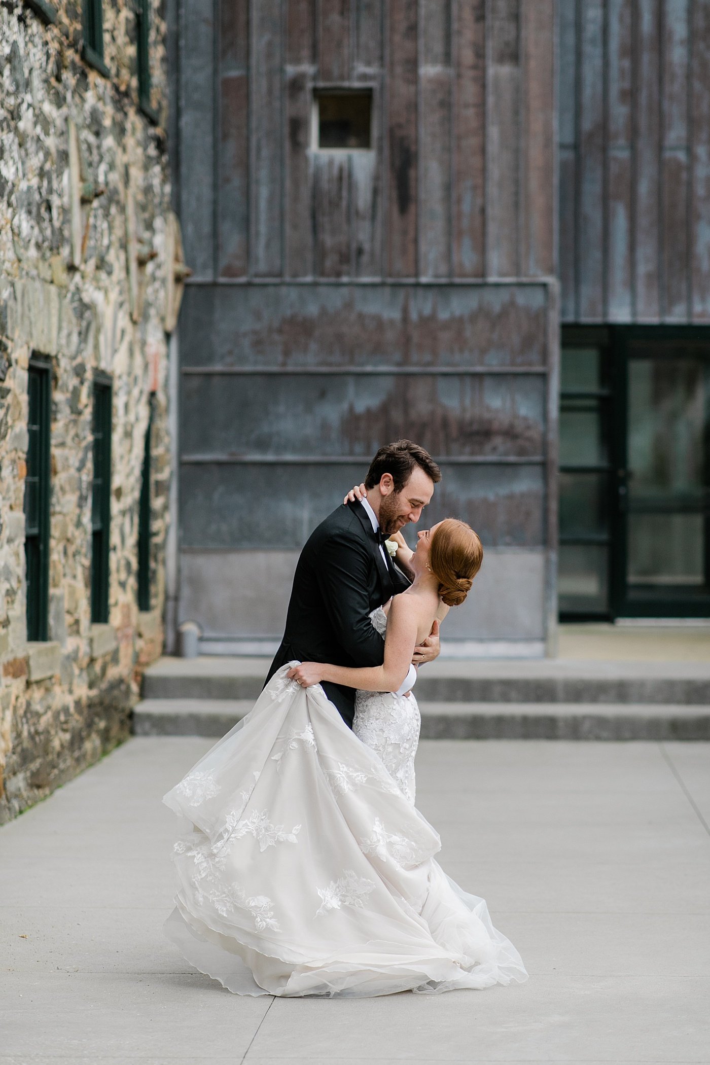 Beautiful inside and out JHP couple Cyleena & Sam were married in September at historic Baltimore wedding venue, the Mt. Washington Dye House. The bold exposed brick was the perfect juxtaposition to their clean and classic style, with a nod to traditional fall colors and plenty of lush florals, especially in the beautiful reception space. Cyleena & Sam carved out plenty of time for many romantic bride and groom portraits on their wedding day and we are in LOVE with the results, and their incredible wedding album Cyleena designed with the JHP Team following the wedding.
